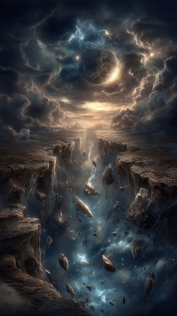 The Greek word “χάος” comes from the verb χαίνω — “to yawn, to gape open.” Chaos is not confusion, but an opening, a rift in non-being from which the cosmos begins. Not destruction, but the potential for creation.